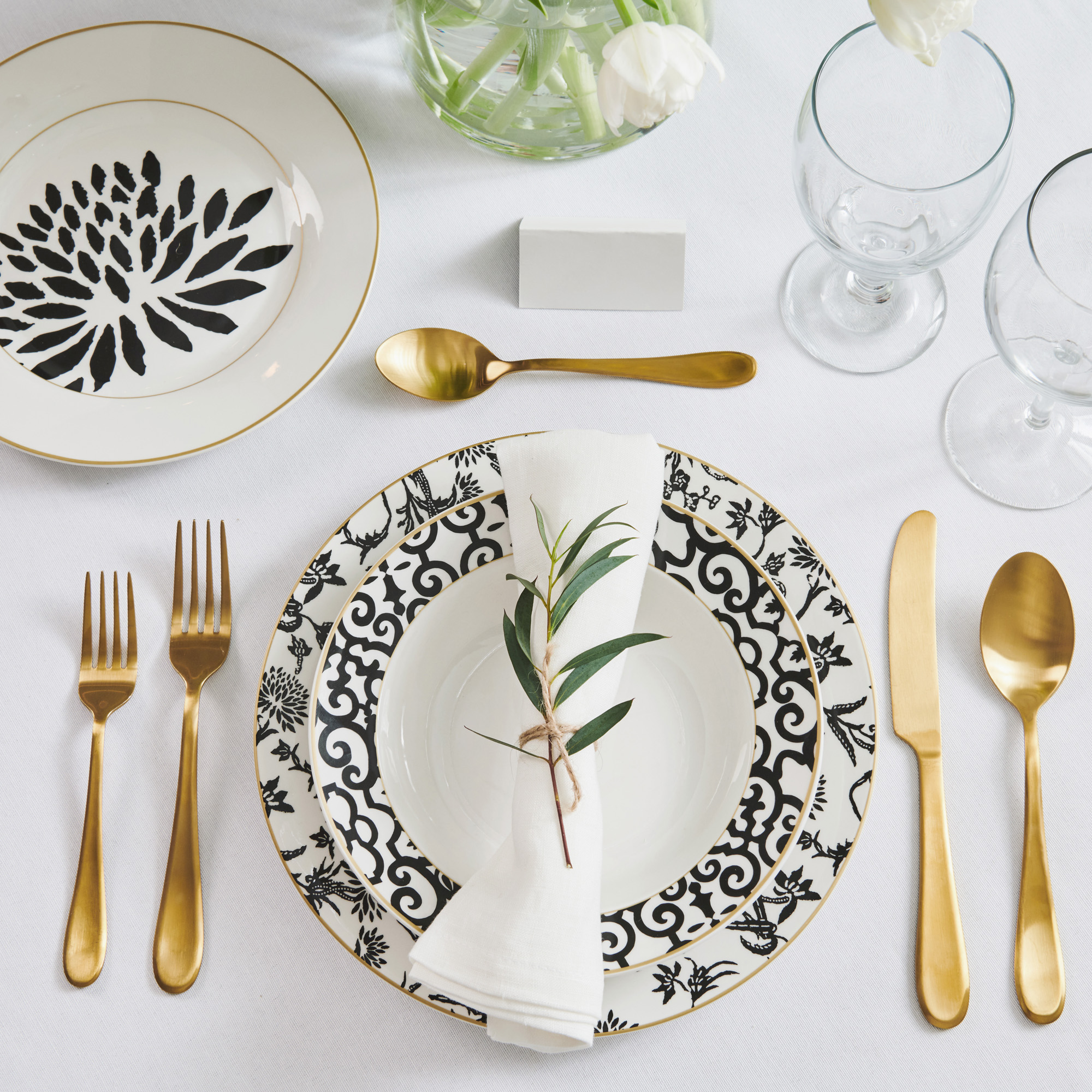 This makes them safe for both microwaves and dishwashers. | bavaria winterling trio cup saucer dessert plate shells black on white gold 1970. Malacasa 26 pieces ivory white porcelain dinnerware set, dinner plates, dishes dinner sets, plates and bowls sets square soup dessert plates service for 6, series flora. Come with many different stylish brand, such as blue and white dinnerware, white dinnerware sets, blue and white license plate, white gold plated rings, blue and white porcelain plates and so on. Vremi 16 piece multicolor porcelain dinnerware set with 4 dinner plates, 4 dessert plates, 4 salad/soup bowls, & 4 coffee/tea mugs. White porcelain dinnerware brings a clean look to the table. Modern customized bulk dinnerware simply black and white grid porcelain western dinner black white dinnerware include a different number of pieces and may include a wide range of products. Get it now on amazon.com first up on our list, we have a dinner set from corelle. Porcelain dinnerware set details about custom restaurant dinnerware, discount restaurant dinnerware,on two eight ceramics, welcome to visit our factory! Welcome to the dinnerware collection! Shop for black porcelain dinnerware online at target. These are widely acclaimed by our clients for its optimum finish and sophisticated designs. White gold cutlery set dinnerware set tableware matte black silverware dinner fork knife teaspoon korean chopsticks dropshipping.
